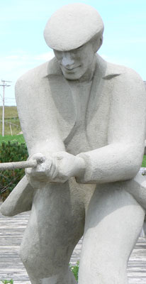 » Devant l’église, j’ai vu un homme, vêtu tout en noir qui s’est approché en hésitant et regardant partout.// J’étais caché derrière une boîte aux lettres.// Je l’ai ensuite vu / tourner vers la gauche le pied de la statue, et une porte s’est ouverte dans le mur de l’église. »